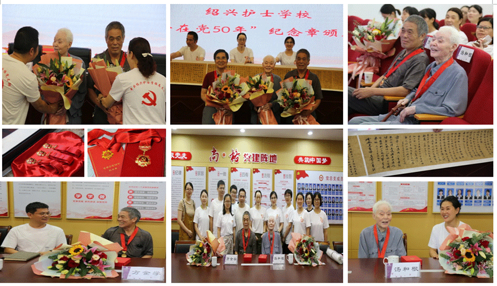中国共产党成立百年之际,beat365平台官方网站根据上级党组织安排部署,为符合条件的退休老党员汤和根、方金学、孟长富举行了“光荣在党50年”纪念章颁发仪式。全校党员干部、教职工参加了这次简朴而热烈的仪式。